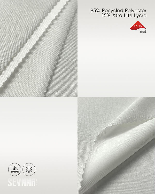 リサイクルポリエステル85%とXtra Life Lycra 15%で構成されたこれらのストレッチヤーンライクラ生地は、環境に優しいだけでなく、長持ちします。この生地は、何度も洗濯しても形状と色を維持する能力で知られており、アクティブウェアデザイナーにとって信頼できる選択肢となっています。